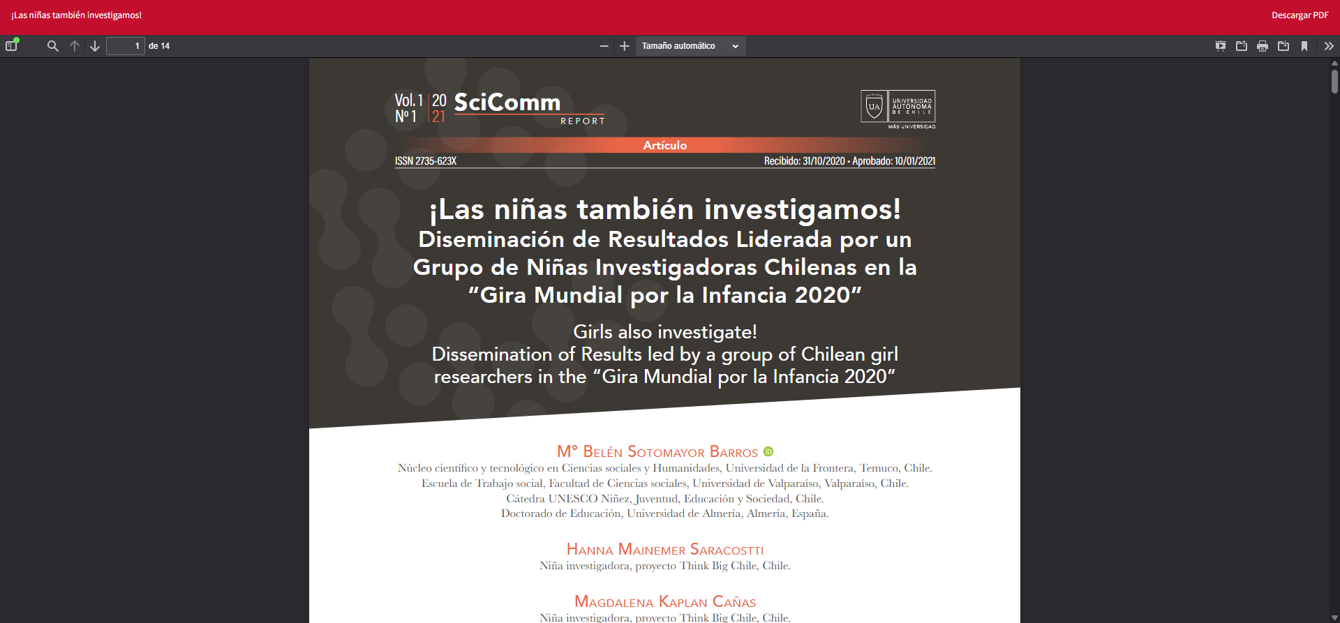 ¡Las niñas también investigamos! Diseminación de Resultados Liderada por un Grupo de Niñas Investigadoras Chilenas en la “Gira Mundial por la Infancia 2020”