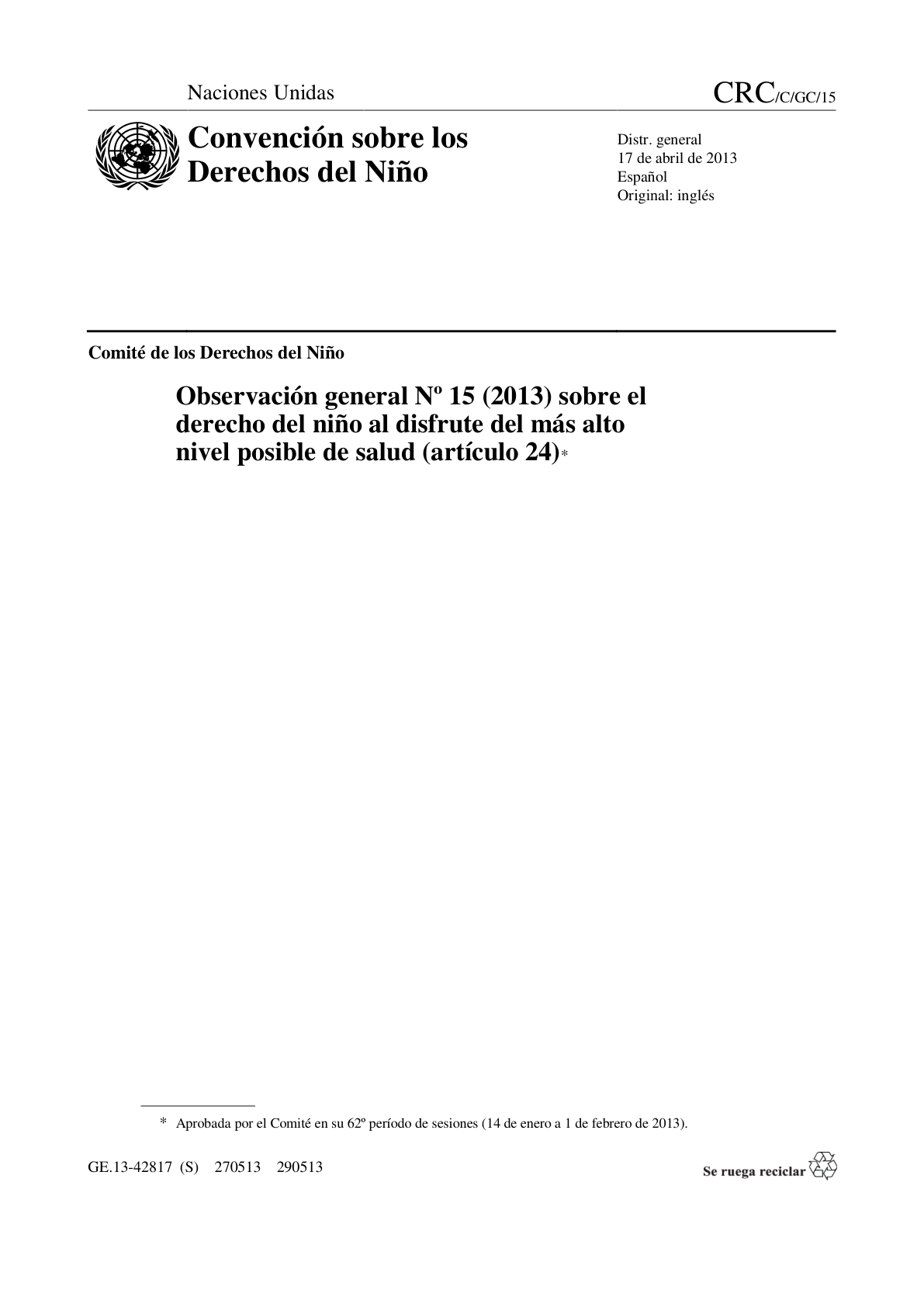 Observación general 15 (2013) Sobre el derecho del niño al disfrute del más alto nivel posible de salud