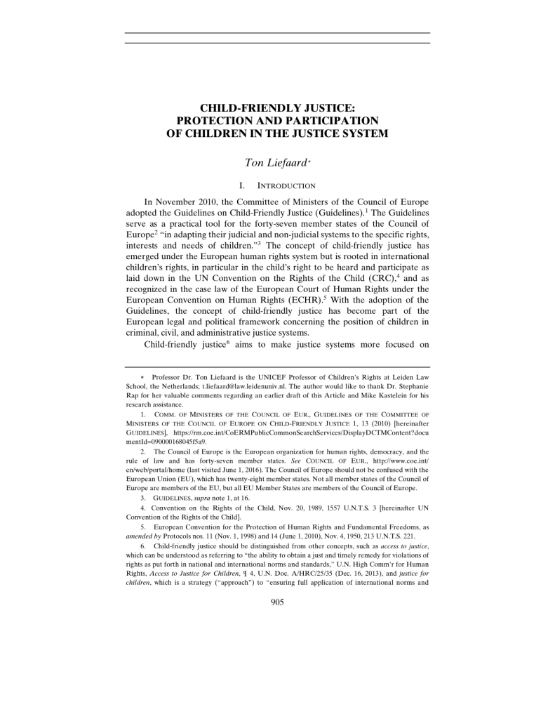 Child-Friendly Justice: Protection and Participation of Children in the justice system
