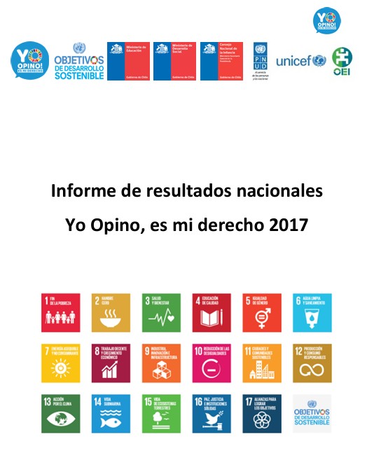 A continuación se entregan los resultados de la tercera versión del proceso participativo Yo Opino, es mi derecho, dirigido a niños, niñas y adolescentes del sistema escolar y educación inicial de Chile, quienes fueron convocados por el Consejo Nacional de la Infancia y el Programa de Naciones Unidas para el Desarrollo (PNUD), en colaboración con el Ministerio de Educación, el Ministerio de Desarrollo Social, la UNICEF y la OEI, para informarse e involucrarse en los desafíos de la Agenda 2030 y los Objetivos de Desarrollo Sostenibles (ODS).