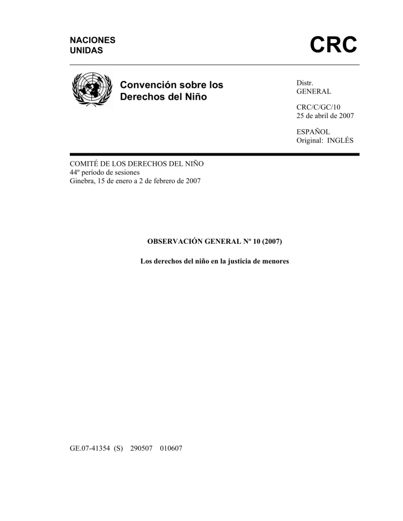 Observación general 10 (2007) Los derechos del niño en la justicia de menores