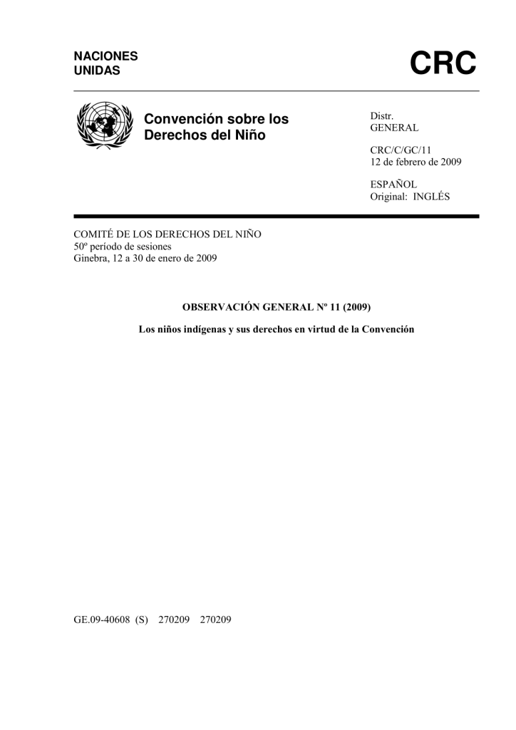 Observación general 11 (2009) Los niños indígenas y sus derechos en virtud de la Convención
