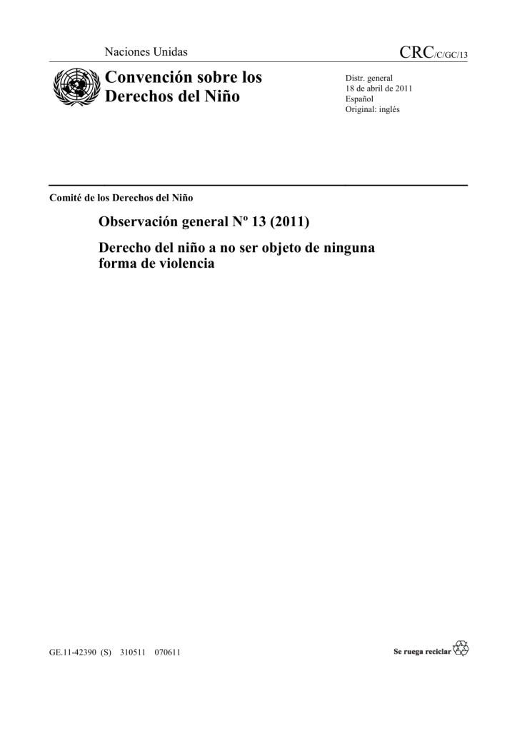 Observación general 13 (2011) Derecho del niño a no ser objeto de ninguna forma de violencia