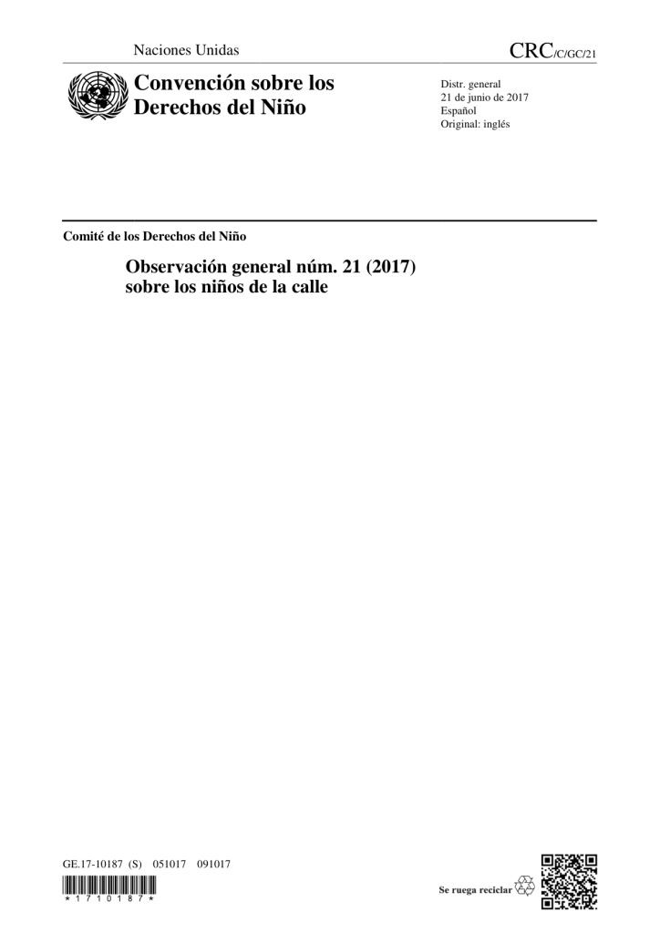 Observación general 21 (2017) Sobre los niños de la calle