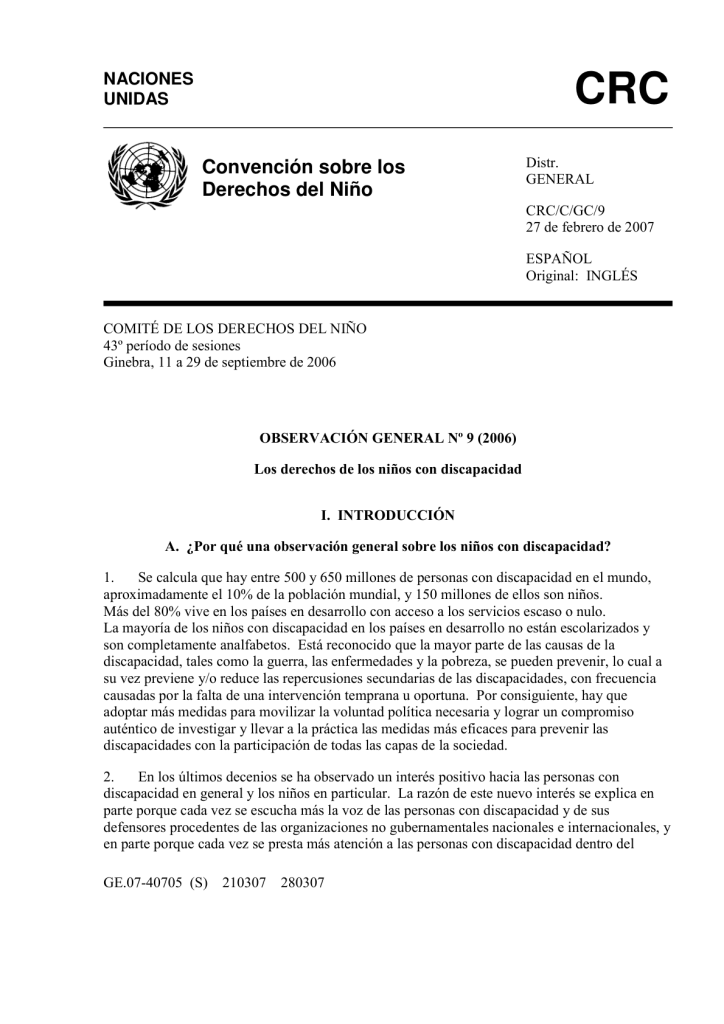 Observación general 9 (2006) Los derechos de los niños con discapacidad