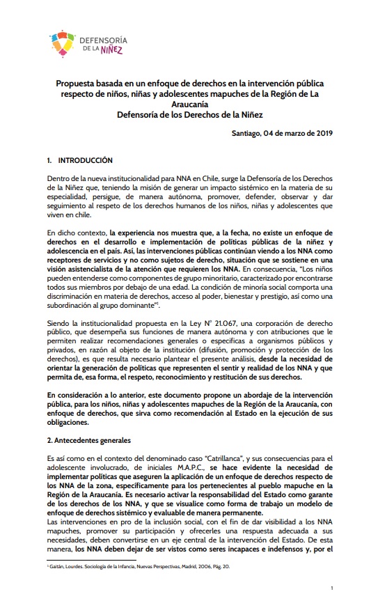 Dentro de la nueva institucionalidad para NNA en Chile, surge la Defensoría de los Derechos